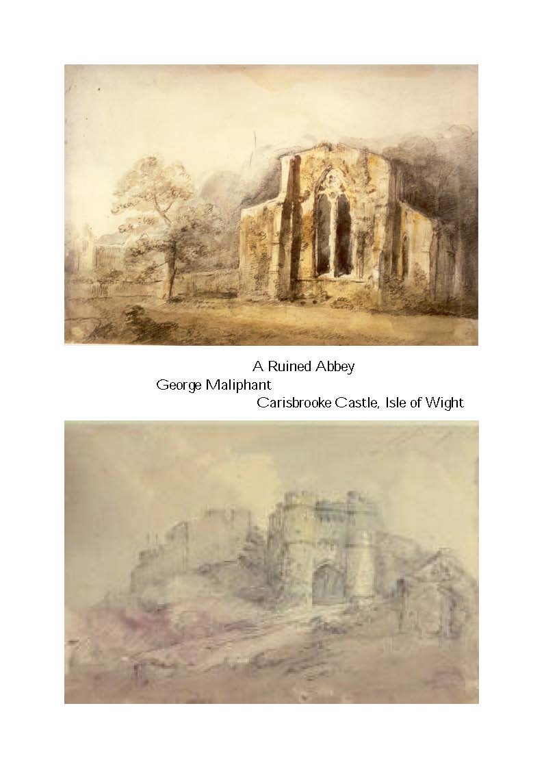 entrance. Inscribed Carisbrooke Castle. Pencil sketch, washed with